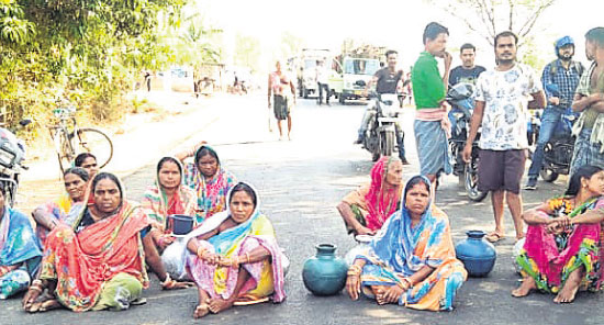 ପାଣି ପାଇଁ ରାସ୍ତାରେ ମହିଳା
