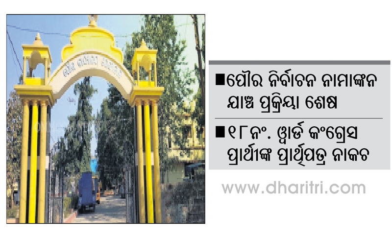 ଢେଙ୍କାନାଳ ଅଫିସ, ୧୦ା୩: ଢେଙ୍କାନାଳ ପୌର ନିର୍ବାଚନ ଲାଗି ପ୍ରାର୍ଥିପତ୍ର ଯାଞ୍ଚ ପ୍ରକ୍ରିୟା ବୁଧବାର ଶେଷ ହୋଇଛି। ଯାଞ୍ଚ ପରେ ୨୩ ୱାର୍ଡର ୮୫ କାଉନ୍ଲସିଲର ଏବଂ ୭ ନଗରପାଳ ପ୍ରାର୍ଥୀଙ୍କ ନାମାଙ୍କନ କାଏମ ରହିଛି। ସେହିପରି ୧୮ନଂ. ଓ୍ବାର୍ଡର କଂଗ୍ରେସ...