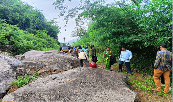 ପଥର ଧସି ରାସ୍ତା ଅବରୋଧ