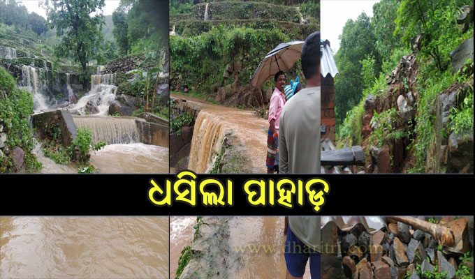 ଲଗାଣ ବର୍ଷା ଯୋଗୁ ପୁଣି ଗଜପତିରେ ଧସିଲା ପାହାଡ଼, ମାଡ଼ି ଆସିଲା ଝରଣା ପାଣି