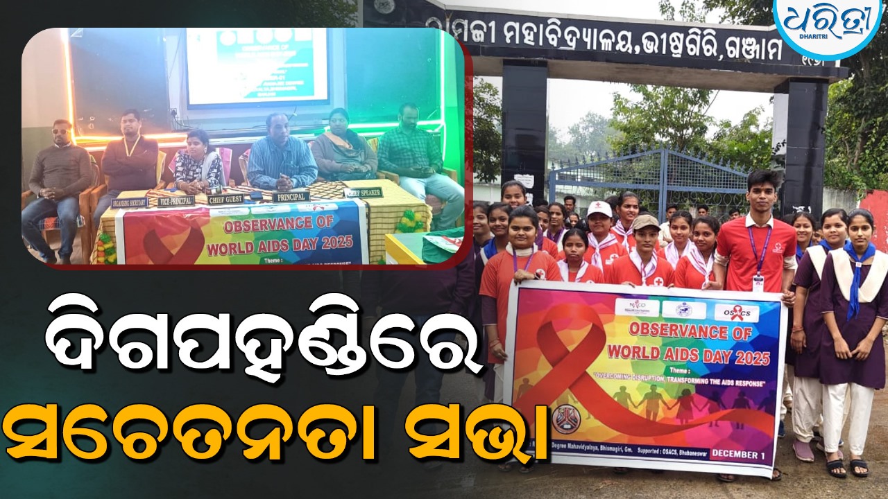 ଦିଗପହଣ୍ଡି,୧।୧୨(ଅଶେଷ ନାଥ ମିଶ୍ର): ଗଞ୍ଜାମ ଜିଲା ଦିଗପହଣ୍ଡି ବ୍ଲକର ଭୀଷ୍ମଗିରି ଗ୍ରାମ ସ୍ଥିତ ରାମଜୀ କଲେଜ ପରିସରରେ ସୋମବାର ଦିନ ବିଶ୍ୱ ଏଡସ୍ ଦିବସ ପାଳିତ ହୋଇଯାଇଛି। ଏହି ଅବସରରେ ଏକ ସଚେତନତା ସଭା ଓ ଶୋଭାଯାତ୍ରା ଅନୁଷ୍ଠିତ ହୋଇଥିଲା।...