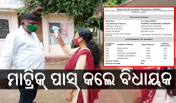 ମାଟ୍ରିକ୍ ପାସ୍ କଲେ ସୋରଡା ବିଧାୟକ; ରହିଲା B2 ଗ୍ରେଡ୍