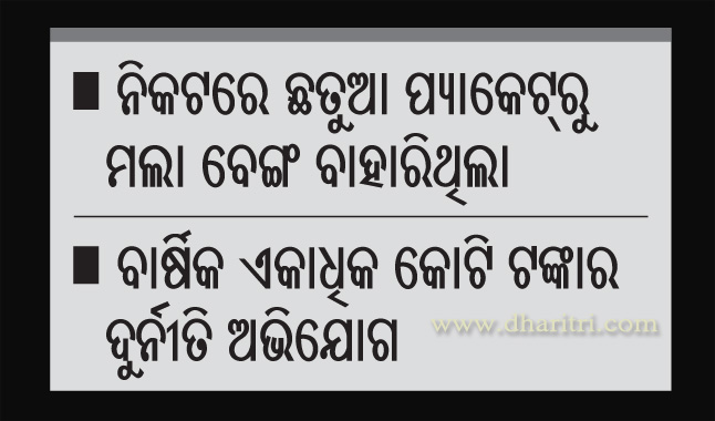 ଭୁବନେଶ୍ୱର (ସୂର୍ଯ୍ୟକାନ୍ତ ବେହେରା)/ ପାରାଦୀପ,(ଶରତ ରାଉତ)/ ସିମୁଳିଆ, ୧୪।୧୦ (ସନ୍ତୋଷ ନାୟକ): ପୋର୍ଟ ହେଲ୍ଥ ମେଡିକାଲ କ୍ଲିୟରାନ୍ସ ପ୍ରଦାନ ପାଇଁ ଜାହାଜ କ୍ରିଉ ମେମ୍ବର (ନାବିକ)ଙ୍କଠାରୁ ୫୪ ହଜାର ଲାଞ୍ଚ ନେବାବେଳେ ଗିରଫ ହୋଇଥିବା ପାରାଦୀପ ବନ୍ଦରସ୍ଥିତ ପୋର୍ଟ ହେଲ୍ଥ...