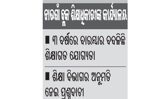 ନାଉଗାଁ,୨୬।୩(ସ୍ବ.ପ୍ର): ଶିକ୍ଷକମାନଙ୍କର ପଦୋନ୍ନତି ପାଇଁ ପ୍ରତିବର୍ଷ ଶିକ୍ଷା ବିଭାଗ ପକ୍ଷରୁ ଶିକ୍ଷକମାନଙ୍କର ଗ୍ରେଡେଶନ ତାଲିକା ପ୍ରସ୍ତୁତ କରାଯାଇଥାଏ। ଏହି ଗ୍ରେଡେଶନ ତାଲିକା ଜିଲା ଶିକ୍ଷାଧିକାରୀ ଓ ବ୍ଲକ ଶିକ୍ଷାଧିକାରୀଙ୍କ କାର୍ଯ୍ୟାଳୟ ପକ୍ଷରୁ ପ୍ରସ୍ତୁତ କରାଯାଇ ଶିକ୍ଷା ବିଭାଗକୁ ପ୍ରଦାନ କରାଯାଇଥାଏ।...