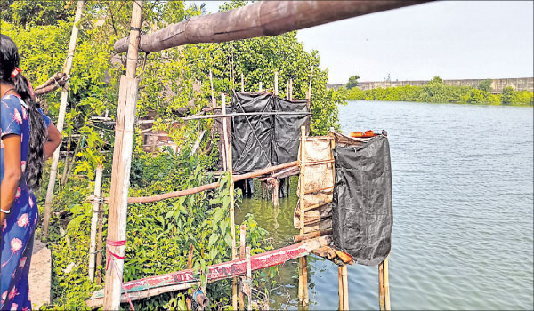 ନଦୀ ଉପରେ ଶତାଧିକ ବାଉଁଶ ଭାଡ଼ି ଶୌଚାଳୟ