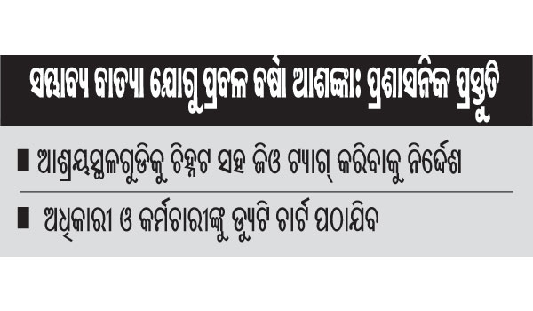 ଜଗତ୍ସିଂହପୁର ଅଫିସ, ୨୨ା୧୦: ବଙ୍ଗେପସାଗରରେ ସୃଷ୍ଟ ଲଘୁଚାପଜନିତ ସମ୍ଭାବ୍ୟ ବାତ୍ୟାର ମୁକାବିଲା ନେଇ ଶୁକ୍ରବାର ଜଗତ୍ସିଂହପୁର ଜିଲା ପ୍ରଶାସନ ପକ୍ଷରୁ ଓସ୍ୱାନ ଭିଡିଓ କନ୍ଫରେନ୍ସିଂ ଜରିଆରେ ପ୍ରସ୍ତୁତି ବୈଠକ ଅନୁଷ୍ଠିତ ହୋଇଯାଇଛି। ଏଥିରେ ଜିଲାପାଳ ପାରୁଲ ପଟୱାରୀ ପୌରୋହିତ୍ୟ କରି...