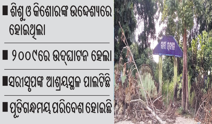 ଏରସମା,୨୩।୧୦(ସ୍ବ.ପ୍ର.): ଏରସମା ବ୍ଲକ ମୁଖ୍ୟାଳୟରେ ଶିଶୁମାନଙ୍କ ଉଦ୍ଦେଶ୍ୟରେ ନିର୍ମିତ ଗାନ୍ଧୀ ଉଦ୍ୟାନ ଏବେ ପରିତ୍ୟକ୍ତ ଅବସ୍ଥାରେ ପଡ଼ିରହିଛି ା ବିଭିନ୍ନ ସଙ୍ଗଠନ ପକ୍ଷରୁ ଏହାର ପୁନରୁଦ୍ଧାର ପାଇଁ ଦାବି ହୋଇଆସୁଥିଲେ ମଧ୍ୟ କୌଣସି ସୁଫଳ ମିଳୁନାହିଁ। ଏରସମାର ଶିଶୁ ଓ...