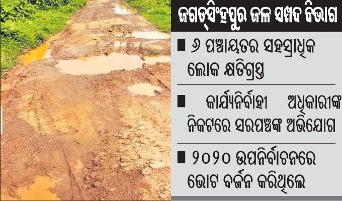 ଜଗତ୍ସିଂହପୁର ଅଫିସ, ୧୩।୮: ରାଜ୍ୟ ସରକାର ବିକାଶ ନାଁରେ ଡେଙ୍ଗୁରା ପିଟୁଛନ୍ତି। କିନ୍ତୁ ଜଗତ୍ସିଂହପୁର ଭଳି ଉପକୂଳବର୍ତ୍ତୀ ଶିକ୍ଷିତ ଜିଲାରେ ବି ଲୋକେ ମୌଳିକ ସୁବିଧାରୁ ବଞ୍ଚିତ ହେଉଛନ୍ତି। ଏପରି କି ଜିଲା ମୁଖ୍ୟାଳୟଠାରୁ ମାତ୍ର ୧୦ କିଲୋମିଟର ଦୂର...