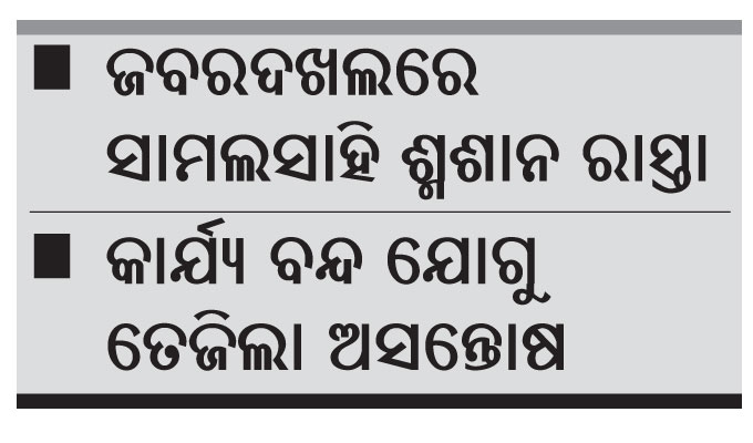 ରଘୁନାଥପୁର,୧୩।୪(ଡି.ଏନ.ଏ.): ରଘୁନାଥପୁର ବ୍ଲକ ଛପଡା ପଞ୍ଚାୟତ ରାହାଡ଼ିଙ୍ଗା ୧୧ ନଂ. ୱାର୍ଡରେ ସାମଲ ସାହି ଶ୍ମଶାନ ରାସ୍ତାକାର୍ଯ୍ୟ ବନ୍ଦ କରାଯାଇଛି। ରାସ୍ତାରେ ଗ୍ରାମବାସୀଙ୍କୁ ଯାତାୟାତ ପାଇଁ ବାରଣ ନେଇ ଜନ ଅସନ୍ତୋଷ ଦେଖାଦେଇଛି। ଫଳରେ ସ୍ଥାନୀୟ ସାମଲସାହିର ୨୫ ଦଳିତ...