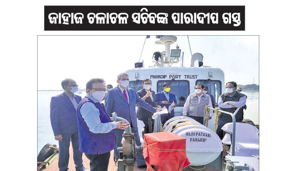ପାରାଦୀପ, ୧୧ା୧(ସ୍ବ.ପ୍ର.): କେନ୍ଦ୍ର ବନ୍ଦର ଜାହାଜ ଚଳାଚଳ ଓ ଜଳପଥ ମନ୍ତ୍ରଣାଳୟ ସଚିବ ଡା.ସଞ୍ଜୀବ ରଞ୍ଜନ ସୋମବାର ପ୍ରଥମ ଥର ପାଇଁ ପାରାଦୀପ ଗସ୍ତ କରିଛନ୍ତି। ତାଙ୍କୁ ସେକ୍ଟର ୨୧ରେ ଥିବା ଜବାହର ଅତିଥି ଭବନରେ ବନ୍ଦର ଅଧ୍ୟକ୍ଷ ପି.ଏଲ...