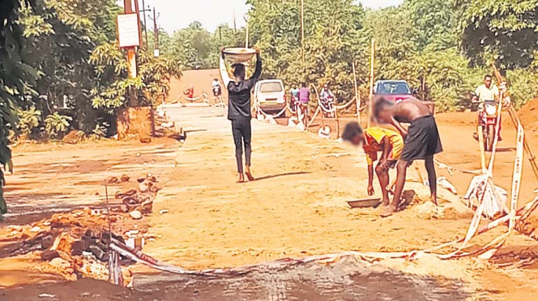 ଟମକା-ମଙ୍ଗଳପୁର ରାସ୍ତା କାର୍ଯ୍ୟରେ ଶିଶୁ ଶ୍ରମିକ
