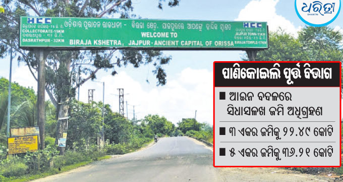 ଯାଜପୁର,୬ା୯(ହର୍ଷବର୍ଦ୍ଧନ ବେହେରା) : ରାଜ୍ୟ ସରକାରଙ୍କ ଦ୍ରୁତ ଶିଳ୍ପାୟନ ପ୍ରକ୍ରିୟାରେ ଯାଜପୁର ଜିଲା କଳିଙ୍ଗନଗରରେ ନବେ ଦଶକରୁ ୯ ହଜାରରୁ ଉର୍ଦ୍ଧ୍ୱ ଏକର ସରକାରୀ ଓ ସାଧାରଣ ପ୍ରଜାଙ୍କ ଜମି ଅଧିଗ୍ରହଣ କରାଯାଇଛି । ସେହି ସମୟରେ ସାଧାରଣ ପ୍ରଜାଙ୍କ...