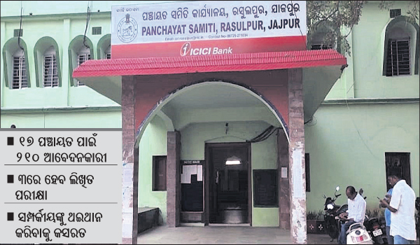 ରସୁଲପୁର,୨ା୧୨(ରଞ୍ଜିତ ରାଉତ): ରସୁଲପୁର ବ୍ଲକ ଅଧୀନ ୧୮ ପଞ୍ଚାୟତରେ ନାହାନ୍ତି ଭିଆର୍ପି(ଭିଲେଜ ରିସୋର୍ସ ପର୍ସନ ଅର୍ଥାତ ଗ୍ରାମ ସମ୍ବଳ ବ୍ୟକ୍ତି)। ତେଣୁ ଏହି ପଦବୀ ପୂରଣ ପାଇଁ ଲିଖିତ ପରୀକ୍ଷା ଆସନ୍ତା ୩ତାରିଖରେ ଅନୁଷ୍ଠିତ ହେବ। ଏଥିପାଇଁ ୧୭ ପଞ୍ଚାୟତରୁ...