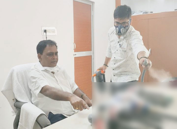ସାନିଟାଇଜ ମେଶିନ ଧରି ବୁଲୁଛନ୍ତି ସ୍ବାସ୍ଥ୍ୟମନ୍ତ୍ରୀ