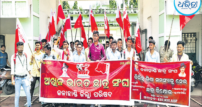 ଭବାନୀପାଟଣା,୪ା୯(ଉତ୍ତମ କୁମାର ଦାଶ):କଳାହାଣ୍ଡି ଜିଲାର ଶିକ୍ଷା ସମସ୍ୟାକୁ ନେଇ ମଙ୍ଗଳବାର ଭବାନୀପାଟଣାସ୍ଥିତ ଜିଲାପାଳଙ୍କ ଅଫିସ ଆଗରେ ଅଖିଳ ଭାରତ ଛାତ୍ର ସଂଘ (ଏଆଇଏସ୍ଏଫ୍) ଓ ଜିଲା ଛାତ୍ର…