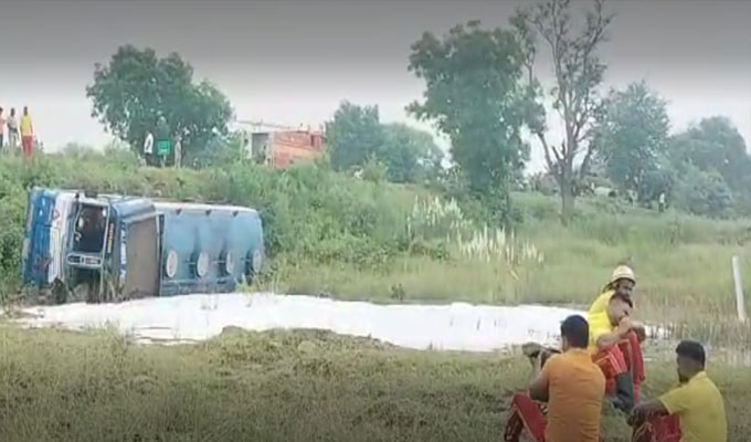 ରାସ୍ତା କଡ଼କୁ ଓଲଟିଲା ଟ୍ୟାଙ୍କର, ଡ୍ରାଇଭର ଗୁରୁତର