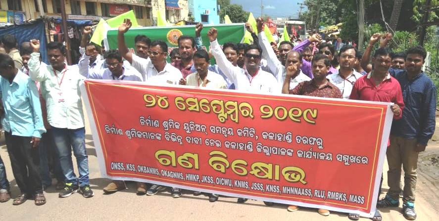 ଜିଲା ନିର୍ମାଣ ଶ୍ରମିକ ୟୁନିୟନ୍ ସମନ୍ବୟ କମିଟି ପକ୍ଷରୁ ବିଭିନ୍ନ ଦାବି: ଜିଲାପାଳଙ୍କ କାର୍ଯ୍ୟାଳୟ ସମ୍ମୁଖରେ ଗଣବିକ୍ଷୋଭ
