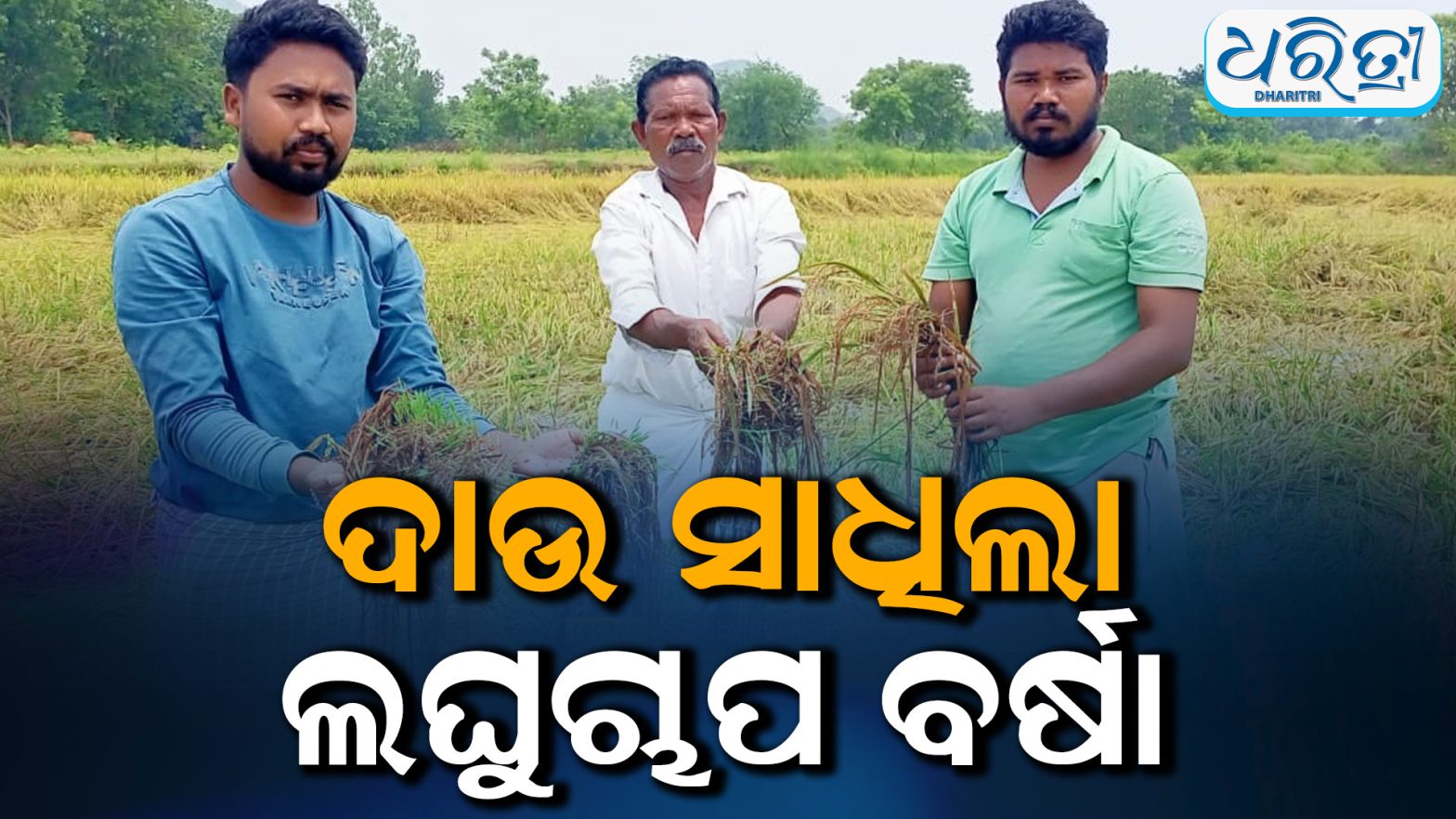 ଲଘୁଚାପ ବର୍ଷାରେ ଗଜା ହେଲା ପାଚିଲା ଧାନ