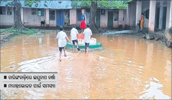 ପିଲାଙ୍କ ମଧ୍ୟାହ୍ନଭୋଜନ ସମୟରେ ବିଦ୍ୟାଳୟ ପରିସରରେ ପଶିଲା ବର୍ଷାଜଳ