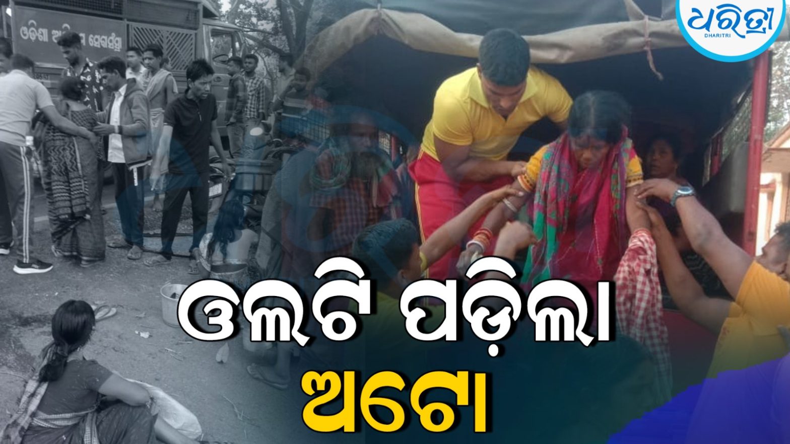 ଭାରସାମ୍ୟ ହରାଇ ଓଲଟି ପଡ଼ିଲା ଅଟୋ, ଭିତରେ ଥିଲେ ଯାତ୍ରୀ