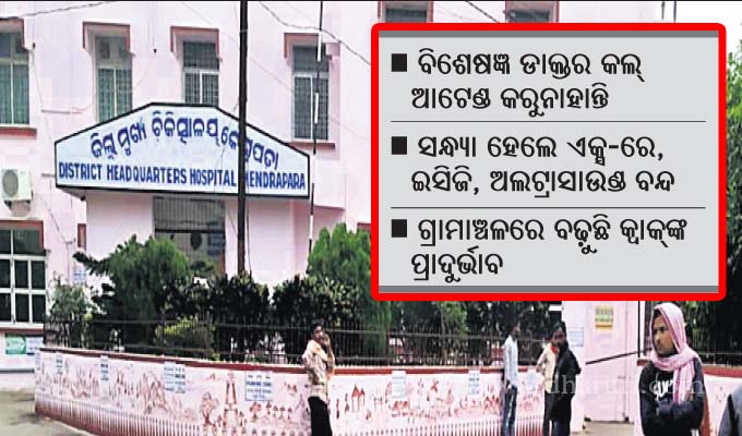କେନ୍ଦ୍ରାପଡ଼ା ଅଫିସ,୨୬ା୮: କେନ୍ଦ୍ରାପଡ଼ା ଜିଲାରେ ସ୍ବାସ୍ଥ୍ୟସେବା ରୁଗ୍ଣ ହେବାରେ ଲାଗିଛି ବୋଲି ବାରମ୍ବାର ଅଭିଯୋଗ ସତ୍ତ୍ୱେ ଏଥିପ୍ରତି କେହି ଦୃଷ୍ଟି ଦେଉନାହାନ୍ତି। ସନ୍ଧ୍ୟା ହେଲେ କେନ୍ଦ୍ରାପଡ଼ା ଜିଲା…