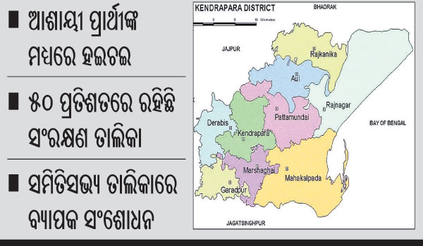କେନ୍ଦ୍ରାପଡ଼ା ଅଫିସ,୯।୧୦: ରାଜ୍ୟ ନିର୍ବାଚନ କମିଶନଙ୍କ ନିର୍ଦ୍ଦେଶକ୍ରମେ ଆସନ୍ତା ତ୍ରିସ୍ତରୀୟ ପଞ୍ଚାୟତ ନିର୍ବାଚନ ପାଇଁ ସଂରକ୍ଷିତ ସ୍ଥାନ ତାଲିକା ଶୁକ୍ରବାର ପ୍ରକାଶ ପାଇଛି। କେନ୍ଦ୍ରାପଡ଼ା ଜିଲାପାଳ ଅମୃତ…