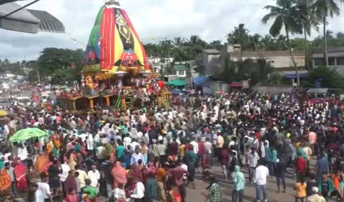କେନ୍ଦ୍ରାପଡ଼ା ଅଫିସ,୧୧।୧୦: କେନ୍ଦ୍ରାପଡ଼ାର ବଳଦେବଜୀଉଙ୍କ ବ୍ରହ୍ମ ତାଳଧ୍ବଜ ରଥ ଶେଷରେ ଗୋଟିଏ ଦିନ ବିଳମ୍ବରେ ଚକଡ଼ାରେ ପହଞ୍ଚିଥିଲା। ତ୍ରୁଟିପୂର୍ଣ୍ଣ ପରିଚାଳନା ଯୋଗୁଁ ରାସ୍ତା ପାଶର୍ବ ଅସ୍ଥାୟୀ ଦୋକାନ ଉପରକୁ ମାଡିଯାଇ ଥିବାରୁ ରଥ ଟାଣିବାରେ ଗୋଟିଏ ଦିନ ବିଳମ୍ବ ହୋଇଥିଲା...