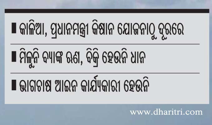 କେନ୍ଦ୍ରାପଡ଼ା ଅଫିସ,୯ା୫: ଅକ୍ଷୟ ତୃତୀୟା ଅବସରରେ ରାଜ୍ୟ ସରକାରଙ୍କ କୃଷି, କୃଷକ ସଶକ୍ତୀକରଣ ବିଭାଗ ପକ୍ଷରୁ ରାଜ୍ୟର ୪୦ଲକ୍ଷରୁ ଊର୍ଦ୍ଧ୍ୱ କ୍ଷୁଦ୍ର ଓ ନାମମାତ୍ର ଚାଷୀଙ୍କୁ କାଳିଆ ଯୋଜନା ମାଧ୍ୟମରେ ୮୦୪ କୋଟି ଟଙ୍କା ପ୍ରଦାନ କରାଯାଇଛି। ସେହିପରି ମୁଖ୍ୟମନ୍ତ୍ରୀ...