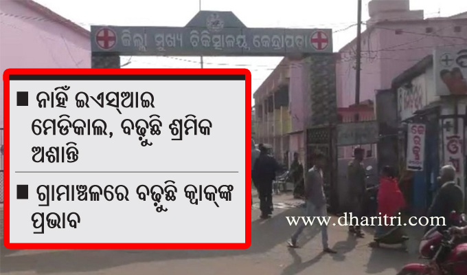 କେନ୍ଦ୍ରାପଡ଼ା ଅଫିସ,୨୬ା୧୧: ରାଜ୍ୟ ସରକାର ଗ୍ରାମାଞ୍ଚଳର ସ୍ୱାସ୍ଥ୍ୟସେବା ପାଇଁ ନୂଆ ଡାକ୍ତରଙ୍କ ପୋଷ୍ଟିଂ ଘୋଷଣା କରିଥିଲେ। ହେଲେ ଆଜି ପର୍ଯ୍ୟନ୍ତ ସେହି ପ୍ରକ୍ରିୟା ସମ୍ପୂର୍ଣ୍ଣ ହୋଇନାହିଁ। ଏହି ପରିପ୍ରେକ୍ଷୀରେ ଦେଖିଲେ କେନ୍ଦ୍ରାପଡ଼ା ଜିଲାରେ ସ୍ୱାସ୍ଥ୍ୟସେବା ଦିନକୁ ଦିନ ଦୁର୍ବଳ ହେବାରେ...