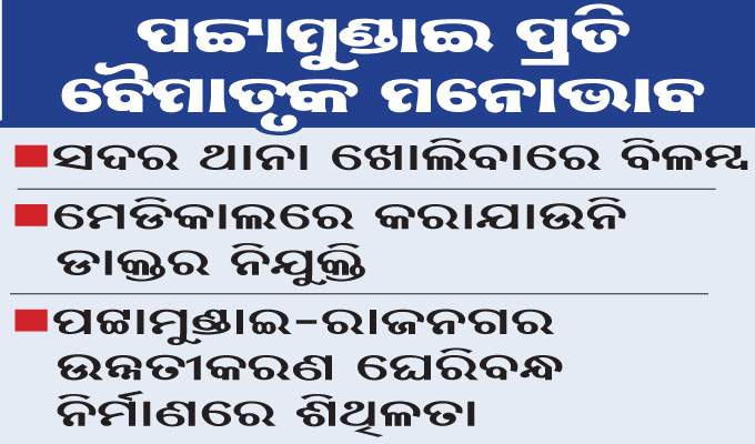 ପଟ୍ଟାମୁଣ୍ଡାଇ, ୨୨।୧୨(ସ୍ବ.ପ୍ର.): କେନ୍ଦ୍ରାପଡ଼ା ଜିଲା ପଟ୍ଟାମୁଣ୍ଡାଇ ବ୍ଲକ ଦୀର୍ଘଦିନରୁ ଅବହେଳିତ ଅବସ୍ଥାରେ ରହିଛି। ବାରମ୍ବାର ବିଭିନ୍ନ ଦାବି ପୂରଣ ଦିଗରେ ରାଜ୍ୟ ସରକାର ଠୋସ ପଦକ୍ଷେପ ନେଉଥିବା ନେଇ ଚର୍ଚ୍ଚା ହେଉଛି। ପଟ୍ଟାମୁଣ୍ଡାଇ ପ୍ରତି ରାଜ୍ୟ ସରକାରଙ୍କ ବୈମାତୃକ ମନୋଭାବର...