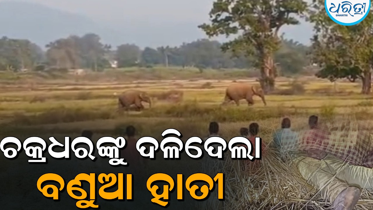 ଚକ୍ରଧରଙ୍କୁ ଦଳିଦେଲା ବଣୁଆ ହାତୀ: ଘଉଡାଇବା ହେଲା କାଳ