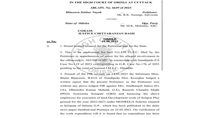 ହାଟଡ଼ିହୀ,୨୩l୫(ଶୁଭକାନ୍ତ ନାୟକ): କେନ୍ଦୁଝର ଜିଲା ହାଟଡ଼ିହୀ ବ୍ଲକ୍ରେ କାର୍ଯ୍ୟରତ କର୍ମଚାରୀଙ୍କ ନାମରେ ମିଥ୍ୟା ଅଭିଯୋଗ ପ୍ରସଙ୍ଗରେ କର୍ମଚାରୀମାନେ ଅଭିଯୁକ୍ତଙ୍କୁ ଗିରଫ ଦାବି ହୋଇଛି। ମାମଲାରେ ବିଡିଓ ଥାନାରେ ମାମଲା କରିଥିବା ବେଳେ ଗିରଫରୁ ବର୍ତ୍ତିବା ପାଇଁ ଅଭିଯୁକ୍ତ ହାଇକୋର୍ଟଙ୍କ ଦ୍ୱାରସ୍ଥ...