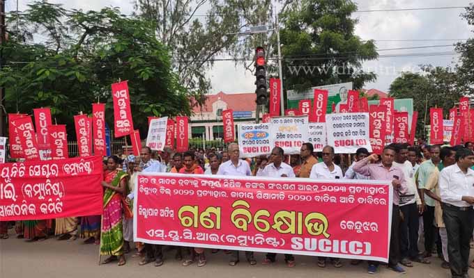 କେନ୍ଦୁଝର,୨୭ା୯(ନରେଶ ଚନ୍ଦ୍ର ପଟ୍ଟନାୟକ): ଏସ୍ୟୁସିଆଇ (କମ୍ୟୁନିଷ୍ଟ) କେନ୍ଦୁଝର ଜିଲା ସାଂଗଠନିକ କମିଟି ପକ୍ଷରୁ ବୁଧବାର କେନ୍ଦୁଝର ଜିଲାପାଳଙ୍କ କାର୍ଯ୍ୟାଳୟ ସମ୍ମୁଖରେ ଏକ ବିକ୍ଷୋଭ ପ୍ରଦର୍ଶନ କରାଯାଇଛି। ବିକ୍ଷୋଭ ପୂର୍ବରୁ କେନ୍ଦୁଝର ସହରର କରଞ୍ଜିଆ ବସ୍ଷ୍ଟାଣ୍ଡଠାରୁ ଚାଷୀମୂଲିଆ, ମହିଳା ଏକ ଶୋଭାଯାତ୍ରାରେ...