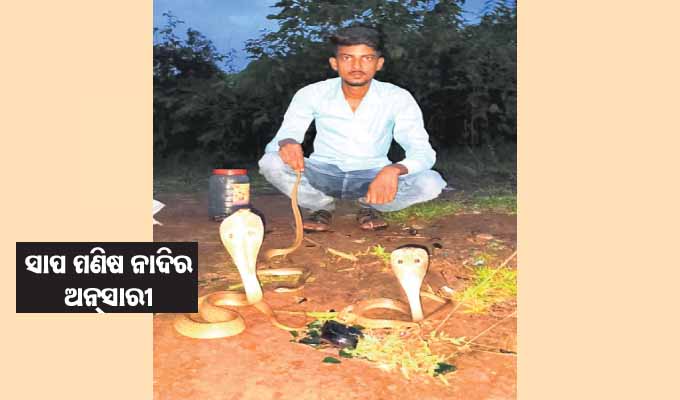 କେନ୍ଦୁଝର,୨୩ା୯(ନରେଶ ଚନ୍ଦ୍ର ପଟ୍ଟନାୟକ): କେନ୍ଦୁଝର ଜିଲା ଘଟଗାଁ ବ୍ଲକ୍ ଢେଙ୍କିକୋଟ ମୁସଲିମ ସାହିର ସାପ ଧରାଳି ଅବଦୁଲ ନାଦିର ଅନ୍ସାରୀ(୨୪)। ଅଞ୍ଚଳରେ ସାପ ମଣିଷ ଭାବେ ପରିଚୟ ଲାଭ କରିଥିବା ଏହି ଯୁବକ ଗତ ୨ ମାସ ମଧ୍ୟରେ ୨...