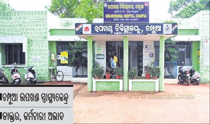 ଚମ୍ପୁଆ,୯।୭(ମହେଶ୍ୱର ଦାସ)କେନ୍ଦୁଝର ଜିଲା ଚମ୍ପୁଆ ଉପଖଣ୍ଡ ଚିକିତ୍ସାଳୟ ନାନା ଘାତ ପ୍ରତିଘାତ ଭିତରେ ଗତି କରୁଛି। ସରକାର ସ୍ବାସ୍ଥ୍ୟସେବା କ୍ଷେତ୍ରରେ ଉନ୍ନତି କରୁଥିବା ବେଳେ ରୋଗୀ ସେବା ନିମନ୍ତେ ବିଭିନ୍ନ ଯୋଜନା ସହିତ କୋଟି କୋଟି ଟଙ୍କା ବ୍ୟୟ ବରାଦ...