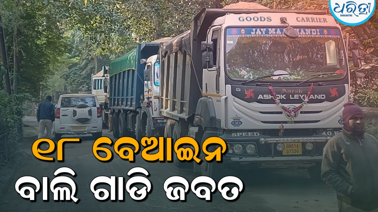 ୧୮ ବେଆଇନ ବାଲି ବୋଝେଇ ଗାଡି ଜବତ: ଡ୍ରାଇଭର ଫେରାର