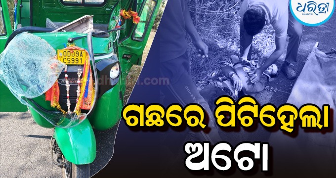 ବାଇକ୍କୁ ବଞ୍ଚାଇବାକୁ ଯାଇ ଗଛରେ ପିଟିହେଲା ଅଟୋ, ୨ ଗୁରୁତର