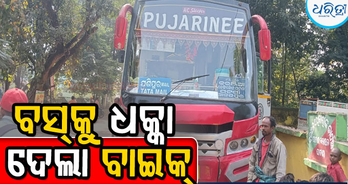 ଭାରସାମ୍ୟ ହରାଇ ବସ୍କୁ ଧକ୍କା ଦେଲା ବାଇକ୍, ଦୁଇ ଗୁରୁତର