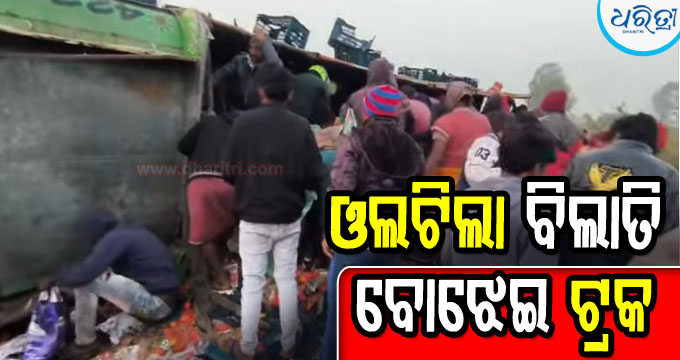 ଓଲଟିଲା ବିଲାତି ବୋଝେଇ ଟ୍ରକ: ବୋହିନେଲେ ଲୋକେ