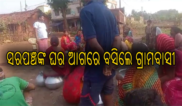 ସରପଞ୍ଚଙ୍କ ଘର ଆଗରେ ଗରା, ହାଣ୍ଡି ଧରି ଧାରଣାରେ ବସିଲେ ଗ୍ରାମବାସୀ