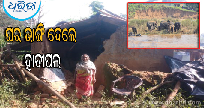 ୩୦ଟିକିଆ ବଣୁଆ ହାତୀ ପଲ ଭାଙ୍ଗିଲେ ୪ଘର