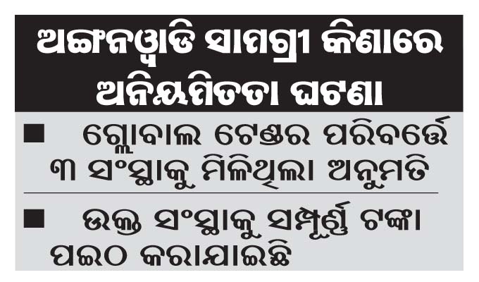 ଖୋର୍ଦ୍ଧା ଅଫିସ,୨୪ା୬: ଅଙ୍ଗନଓ୍ବାଡି କେନ୍ଦ୍ରରେ ଶିଶୁମାନେ ଚେୟାର ଟେବୁଲରେ ବସି ପାଠ ପଢ଼ିବା ସହ ସ୍ବଚ୍ଛ ପାଣି ପିଇବେ। ଏଥିଲାଗି ରାଜ୍ୟ ମହିଳା ଓ ଶିଶୁ କଲ୍ୟାଣ ବିଭାଗ ପକ୍ଷରୁ ଖୋର୍ଦ୍ଧା ଜିଲାକୁ ୮୩ ଲକ୍ଷ ୪୭ ହଜାର ଟଙ୍କା...