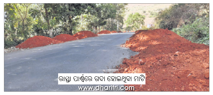 ରାଜପଥ ପାର୍ଶ୍ୱରେ ଗଦା ହୋଇଛି ମାଟି, ଯାତାୟାତରେ ସମସ୍ୟା