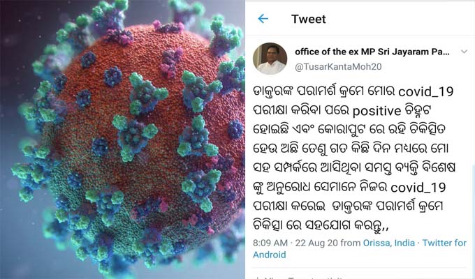 କୋରାପୁଟ,୨୨ା୮(ସ୍ବ.ପ୍ର.): କୋରାପୁଟ ଜିଲାର ବରିଷ୍ଠ ଭାଜପା ନେତା ତଥା ପୂର୍ବତନ ଏମ୍ପି ଓ ମନ୍ତ୍ରୀ ଜୟରାମ ପାଙ୍ଗି ଶନିବାର କରୋନାରେ ଆକ୍ରାନ୍ତ ହୋଇଥିବା ଟୁଇଟ୍ କରି କହିଛନ୍ତି। ତେବେ ଡାକ୍ତରଙ୍କ ପରାମର୍ଶକ୍ରମେ ସେ କୋରାପୁଟରେ ରହି ଚିକିତ୍ସିତ ହେଉଛନ୍ତି। ସେପଟେ...