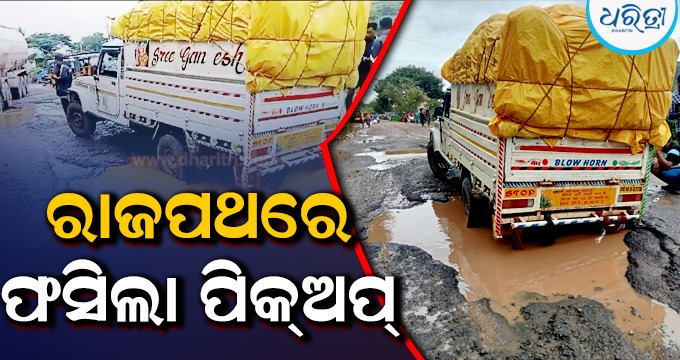 ଜାତୀୟ ରାଜପଥରେ ଫସିଲା ପିକ୍ଅପ୍, ଯାତାୟାତରେ ସମସ୍ୟା