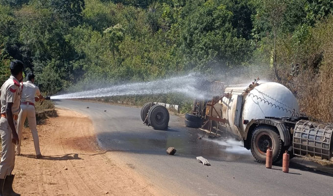 ଓଲଟିଲା ଗ୍ୟାସ୍ ଟ୍ୟାଙ୍କର: ଆନ୍ଧ୍ର-କୋରାପୁଟକୁ ଗାଡ଼ି ଚଳାଚଳ ଠପ୍