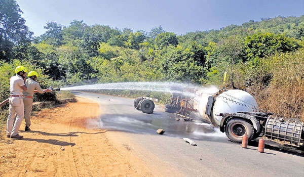 ଗ୍ୟାସ୍ ଟ୍ୟାଙ୍କର ଦୁର୍ଘଟଣାଗ୍ରସ୍ତ, ଗାଡ଼ି ଚଳାଚଳ ବନ୍ଦ
