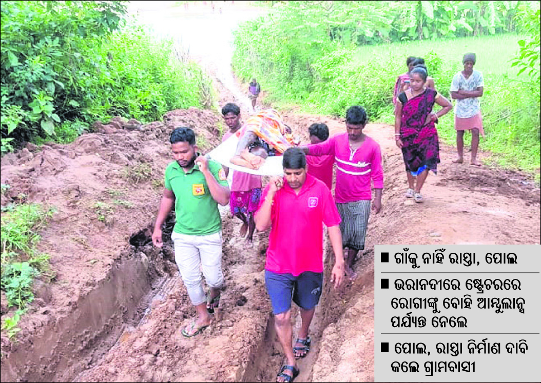 ଷ୍ଟ୍ରେଚରରେ ରୋଗୀଙ୍କୁ ବୋହିଲେ ୩ କି.ମି.