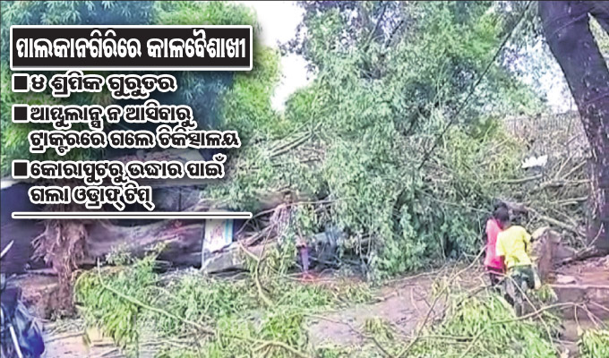 ମାଲକାନଗିରି,୨ା୬(ଡି.ଏନ୍.ଏ.): ମାଲକାନଗିରି ଜିଲା ସଦର ମହକୁମାରେ ଗୁରୁବାର ଅପରାହ୍ନ ପ୍ରାୟ ୪ଟାରେ କାଳବୈଶାଖୀ ଯୋଗୁ ୨୦ମିନିଟ୍ ଧରି ପ୍ରବଳ ବେଗରେ ପବନ ବହିବା ସହ ବଜ୍ରପାତ ହୋଇଥିଲା। ଫଳରେ ରାସ୍ତା ଉପରେ ବଡ଼ ବଡ ଗଛ ଉପୁଡି ପଡିବା ସହ...