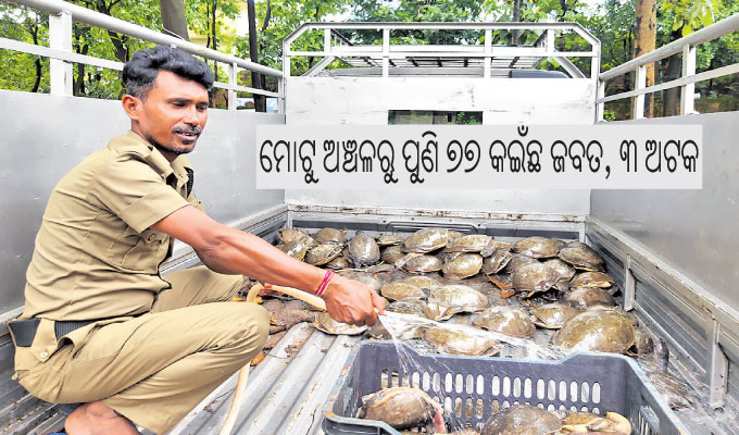 ଏମ୍ଭି ୭୯,୧୧ା୯(ଡି.ଏନ.ଏ.): ମାଲକାନଗିରି ଜିଲା କାଲିମେଳା ବ୍ଲକ ଅନ୍ତର୍ଗତ ମୋଟୁ ଅଞ୍ଚଳରୁ କଇଁଛ ଚୋରାଚାଲାଣ କମିବା ନାଁ ଧରୁନି। ପୂର୍ବରୁ ୨ ଥର ବନ ବିଭାଗ ଚଢ଼ାଉ କରି ଯଥାକ୍ରମେ ୩୫୦ ଓ ୧୫୦ଟି କଇଁଛ ଜବତ କରିଥିବା ବେଳେ...
